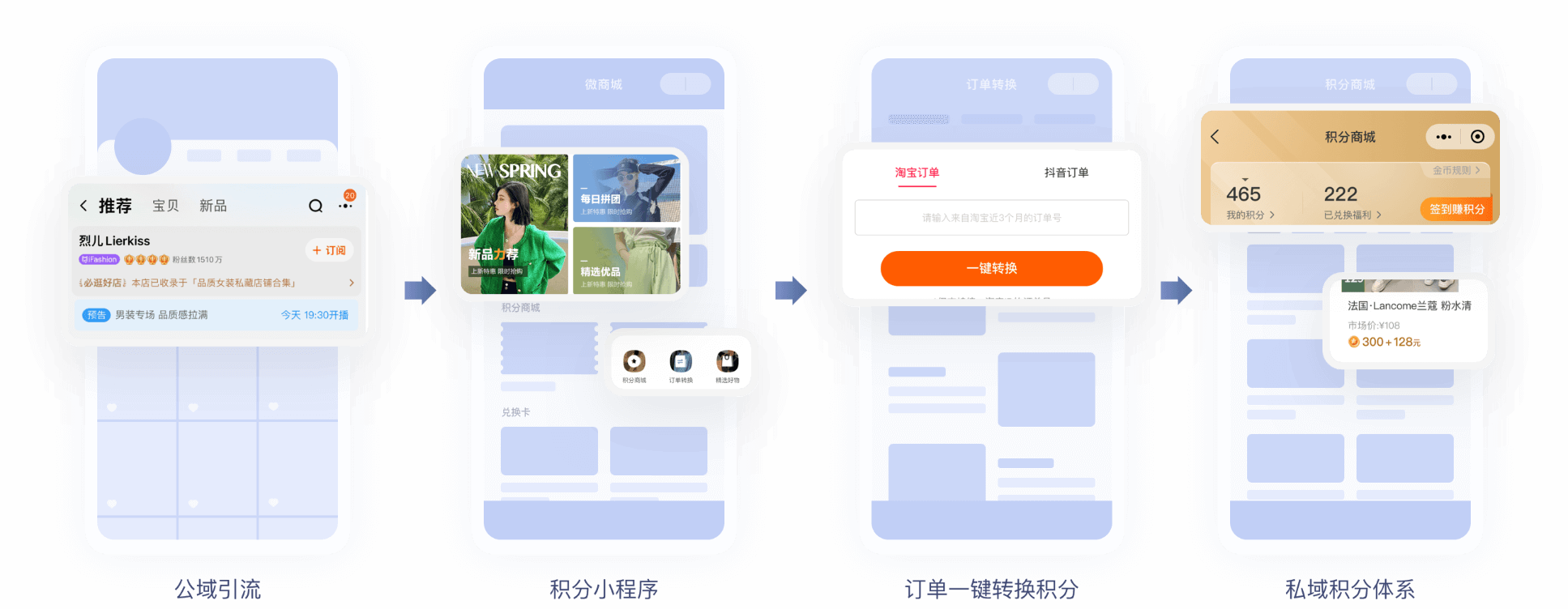 基于各渠道用户消费贡献价值,到私域获得对等权益,实现公域流量源源不断的引至私域,变成自有用户资产
