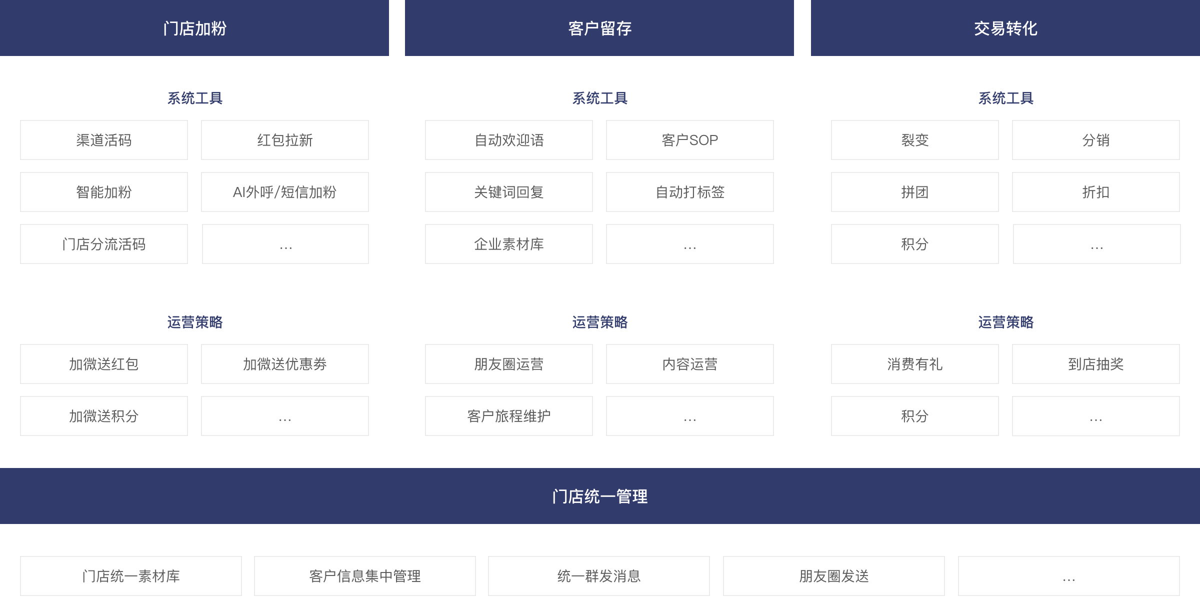 从获客、留存、转化、场景承接等多环节入手,提供完整的门店客户精细化运营解决方案